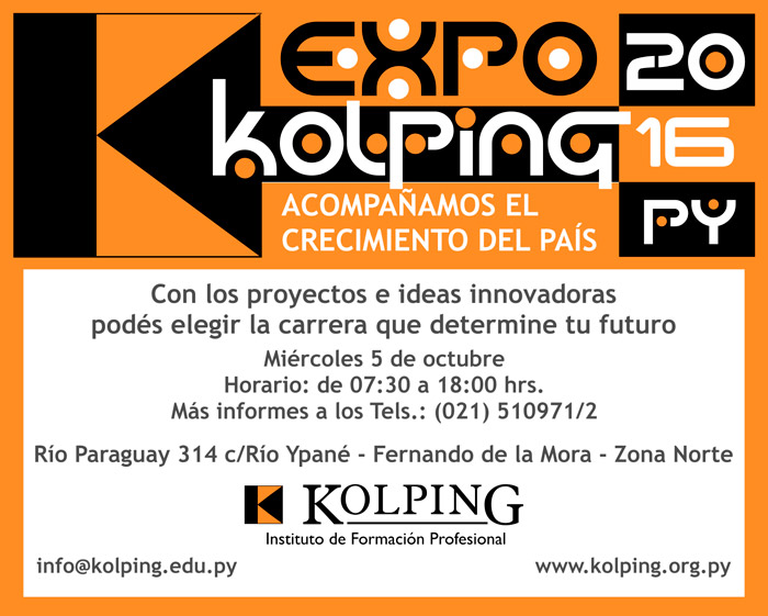 El día miércoles 5/Octubre se habilita la tradicional ExpoKolping en el horario de 07:30 a 18:00 hrs.