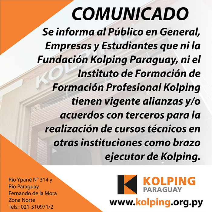 Se informa al Público en General, Empresas y Estudiantes que ni la Fundación Kolping Paraguay, ni el Instituto de Formación de Formación Profesional Kolping